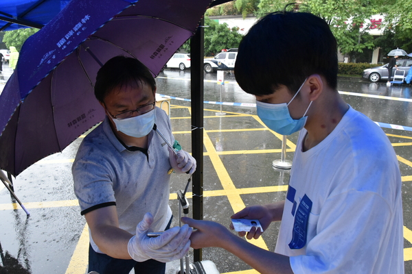 早上不到七点,校园南门,老师们就已经“全副武装”,用严谨的态度、温暖的关怀迎接每一位返校同学。老师们坚守岗位,认真查看健康码、学生证、身份证等相关入校所需的材料,并详细了解返校同学的身体状况。雨中奔跑,拉着、扛着行李的身影令人同学们倍感温暖。