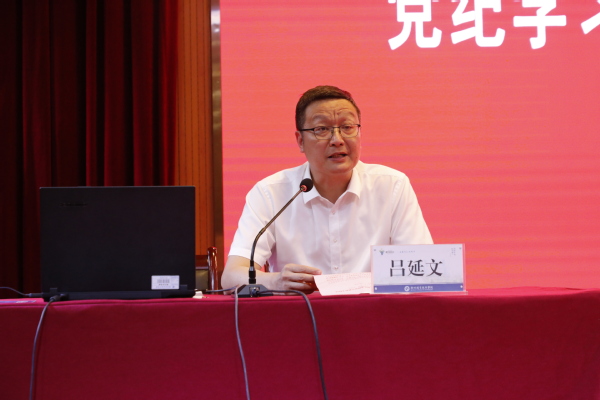 吕延文在主持时强调,全校各级党组织和广大党员,要按照校党委统一部署,持续推进党纪学习教育,坚持把党纪学习教育作为一项重大而严肃的政治任务、作为一切工作的政治提醒,结合本次党课报告精神切实抓好以学促改、以学正风、以学促建,进一步提高站位、树牢标尺、远离红线,切实把党纪学习教育成果,转化为推动学校事业高质量发展的实际成效。
